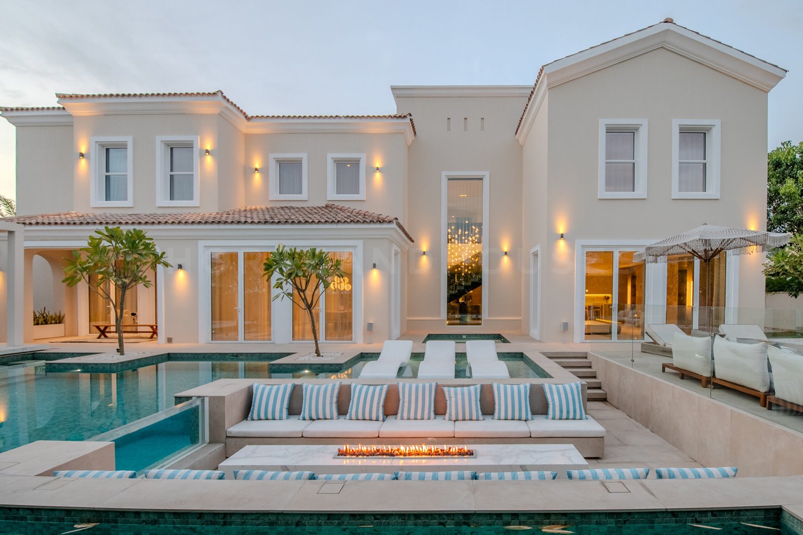 Landscaped gardens and a resort-style pool create a setting for both entertaining and quiet family time — fully aligned with the privacy expected in Polo Homes.